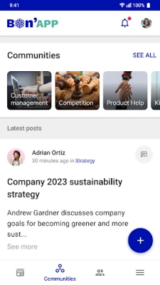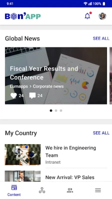 Wherever you work, connect and access general information on company projects or more personalized news on your Department... All through a simple and fluid tool, aiming to facilitate your access to information and allowing interactions. Bon'App offers you the possibility of commenting and liking content in real time!