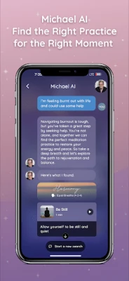 AI-Assisted Meditation Search: Meet Michael AI, your personal mindfulness assistant. Gone are the days of scrolling for the right meditation. Michael AI efficiently finds the perfect session for your current need